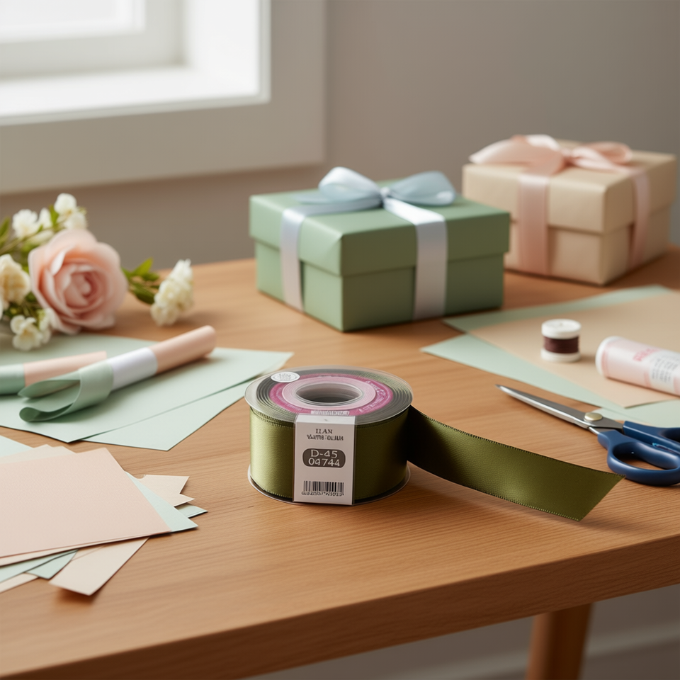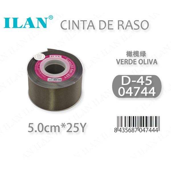 ริบบิ้นผ้าซาตินอิลัน 5.0 ซม. 25 หลา สีเขียวมะกอก D-45