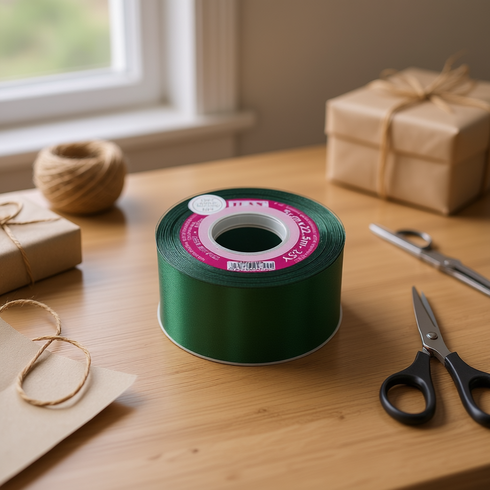 ริบบิ้นผ้าซาตินอิลัน 5.0 ซม. 25 หลา สีเขียวเข้ม D-47