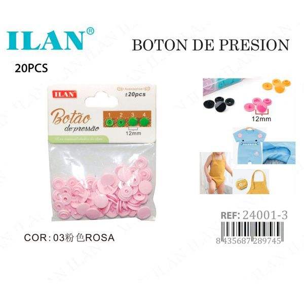 กระดุมแป๊กพลาสติกสีชมพูขนาด 12 มม. ยี่ห้อ Ilan จำนวน 20 ชิ้น สำหรับเสื้อผ้าเด็ก