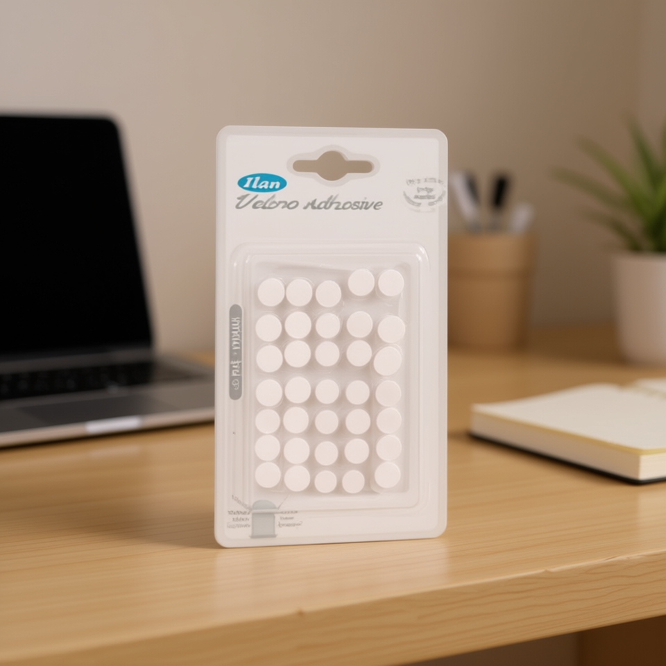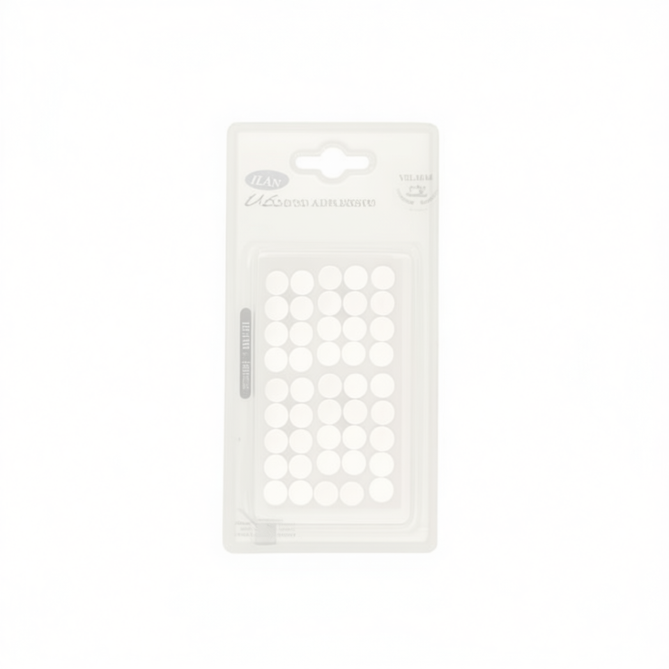 เทปตีนตุ๊กแกโพลีเอสเตอร์แบบมีกาวในตัวสองด้าน ยี่ห้อ Ilan ขนาด 10 มม. 45 ชิ้น รูปทรงกลม สีขาว