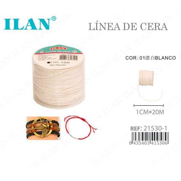 ด้ายแว็กซ์อิลัน 1 มม. x 20 ม. สีขาว สำหรับถักเครื่องประดับ