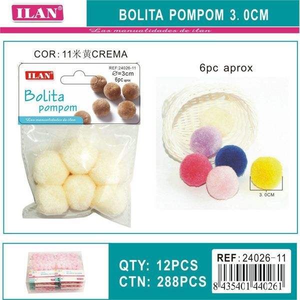 พู่ขนแกะอิลัน ขนาด 3.0 ซม. สีครีม สำหรับงานประดิษฐ์ตกแต่ง