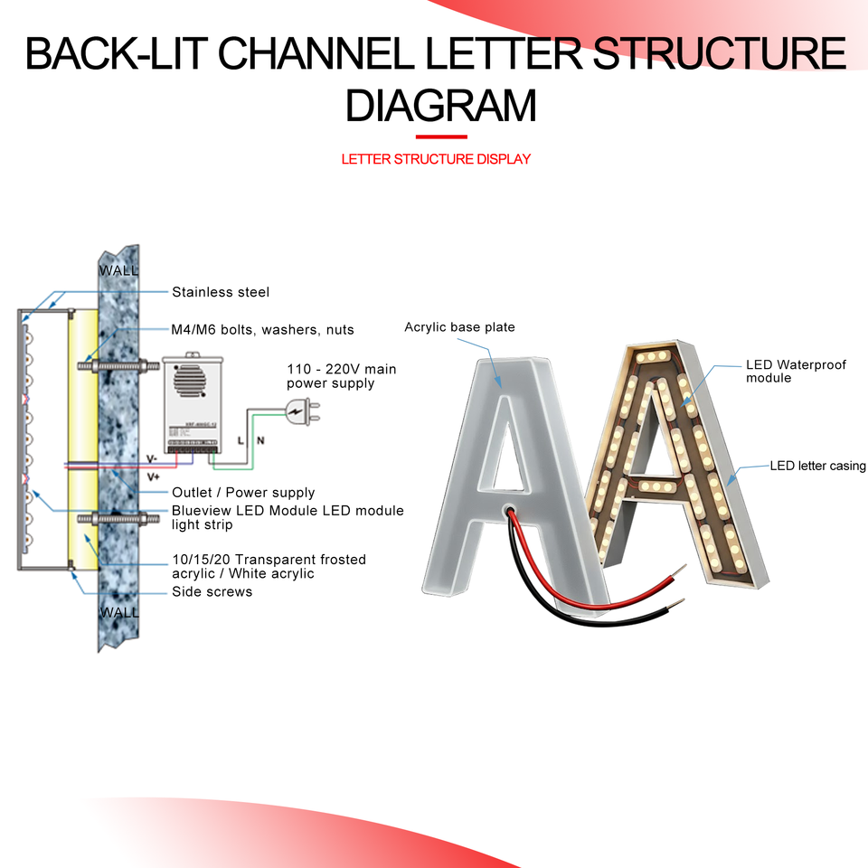 ป้ายตัวอักษรอะคริลิคเรืองแสงพร้อมไฟ LED ความสว่างสูง ตัวเรือนโครเมียม กันน้ำ ทนทาน พร้อมไฟแบ็คไลท์