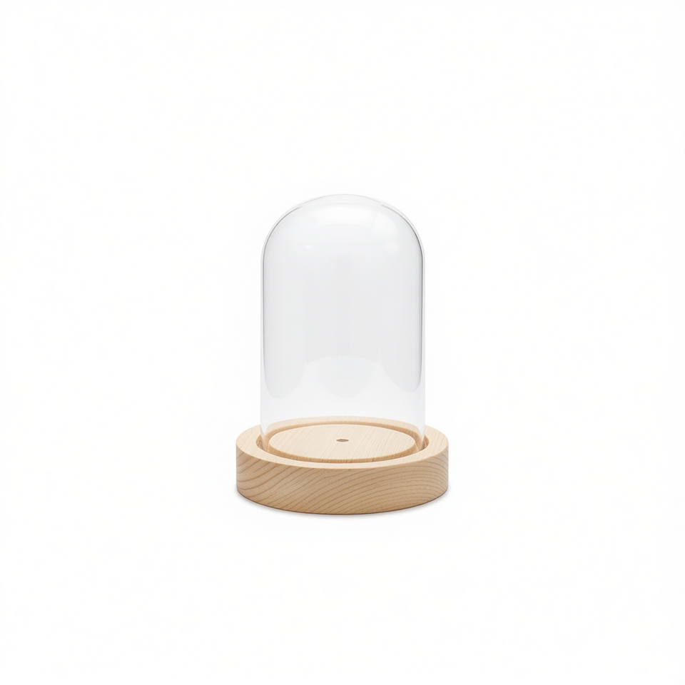โดมแก้วใสพร้อมฐานไม้ขนาด 6x10 ซม. สำหรับโชว์ของตกแต่ง