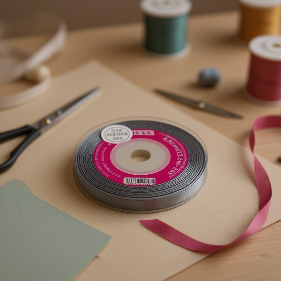 ริบบิ้นผ้าซาติน 0.6 ซม. 25 หลา สีเทาเดนิม D-42