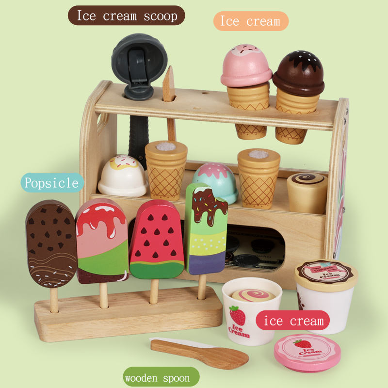 ของเล่นร้านขายไอศกรีมเสริมสร้างจินตนาการ ชุดของเล่นบทบาทสมมติสำหรับเด็ก ของเล่นไม้รูปอาหารยูเลเบย์ เหมาะสำหรับเด็กทั้งชายและหญิง อายุ 3-8 ปี