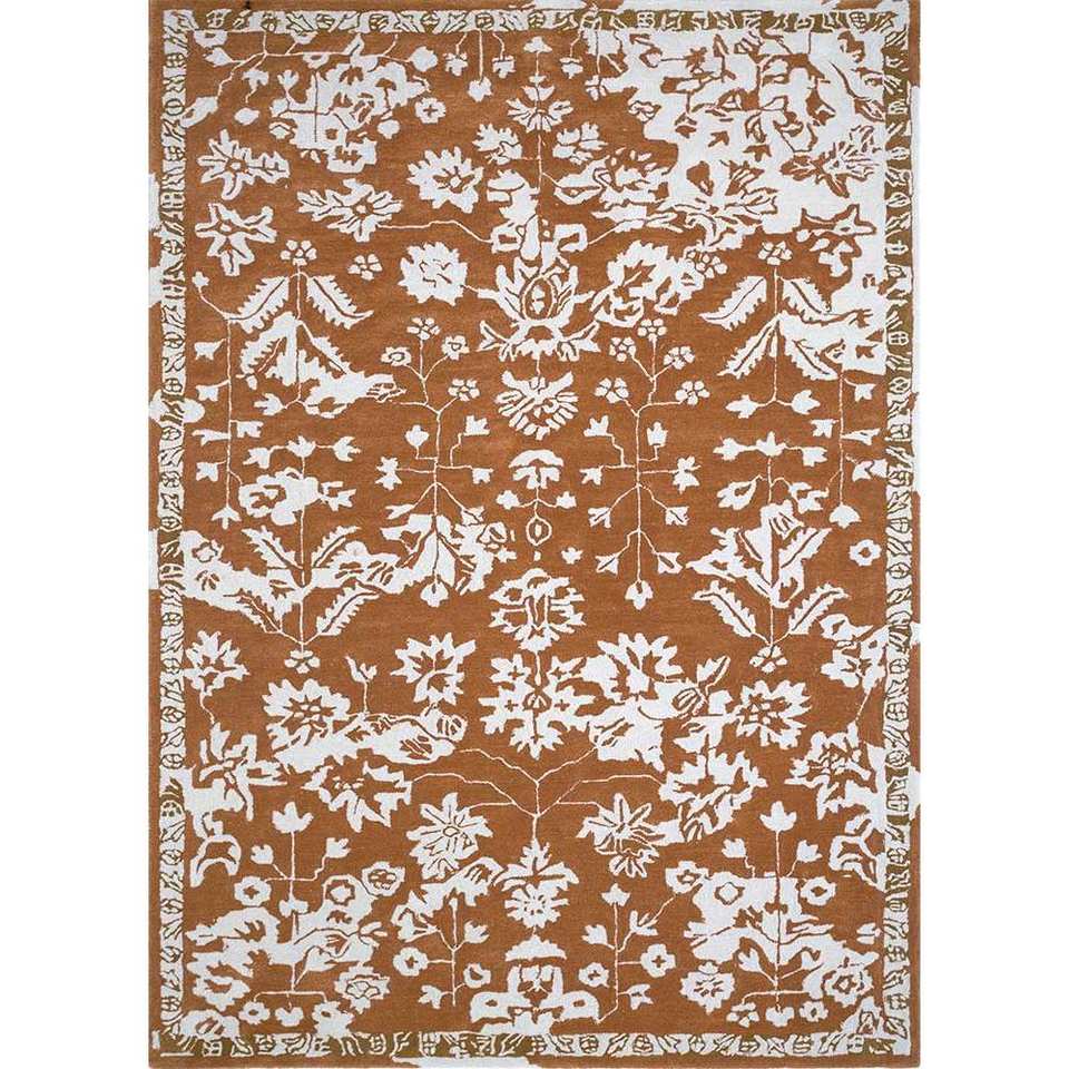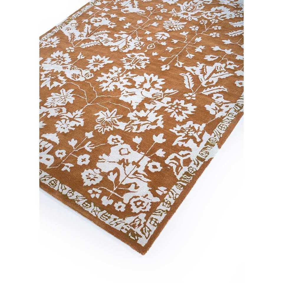 พรมขนสัตว์และใยวิสโคสทอมือลายดอกไม้สไตล์โบโฮสีเบจและน้ำตาล ยี่ห้ออิมาร่า สำหรับตกแต่งบ้าน ห้องนั่งเล่น ห้องโถง หรือห้องนอน-Tra-13024