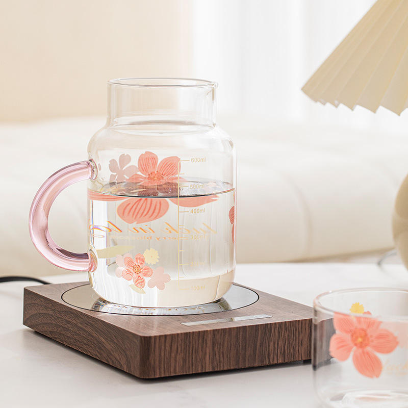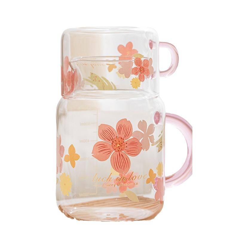 ชุดขวดน้ำแก้วอิมู เชอร์รี่ บลอสซั่ม 2 ชิ้นพร้อมที่จับความจุสูงสำหรับใช้ในบ้านสำนักงาน