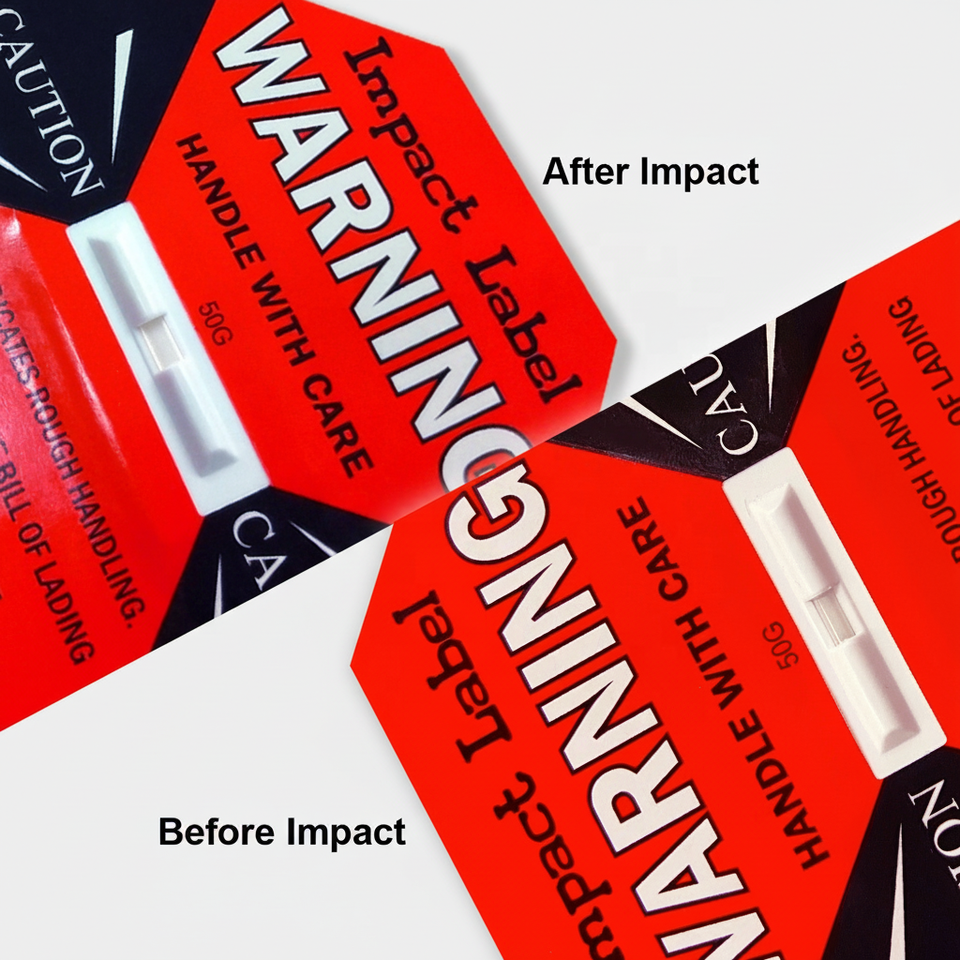ฉลากกันกระแทก 50G สำหรับการขนส่ง ผลิตโดย Wan-Yo ไต้หวัน ผู้ผลิตอุปกรณ์ตรวจจับแรงกระแทก