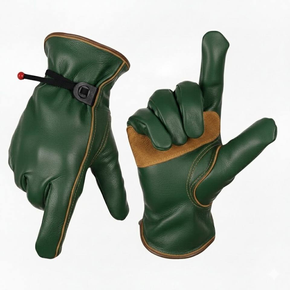 ถุงมือช่างหนังทนแรงกระแทก สายรัดปรับได้ ถุงมือเพิ่มความปลอดภัยในการทำงาน ถุงมือสำหรับงานหนัก ถุงมือสำหรับคนขับรถ