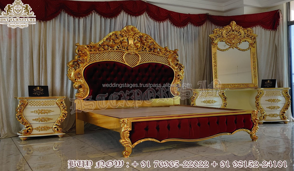 Imperial Throne Style King Size Bed with Side Tables Teak Wood Modern Design Customized Size & Personalized Color
