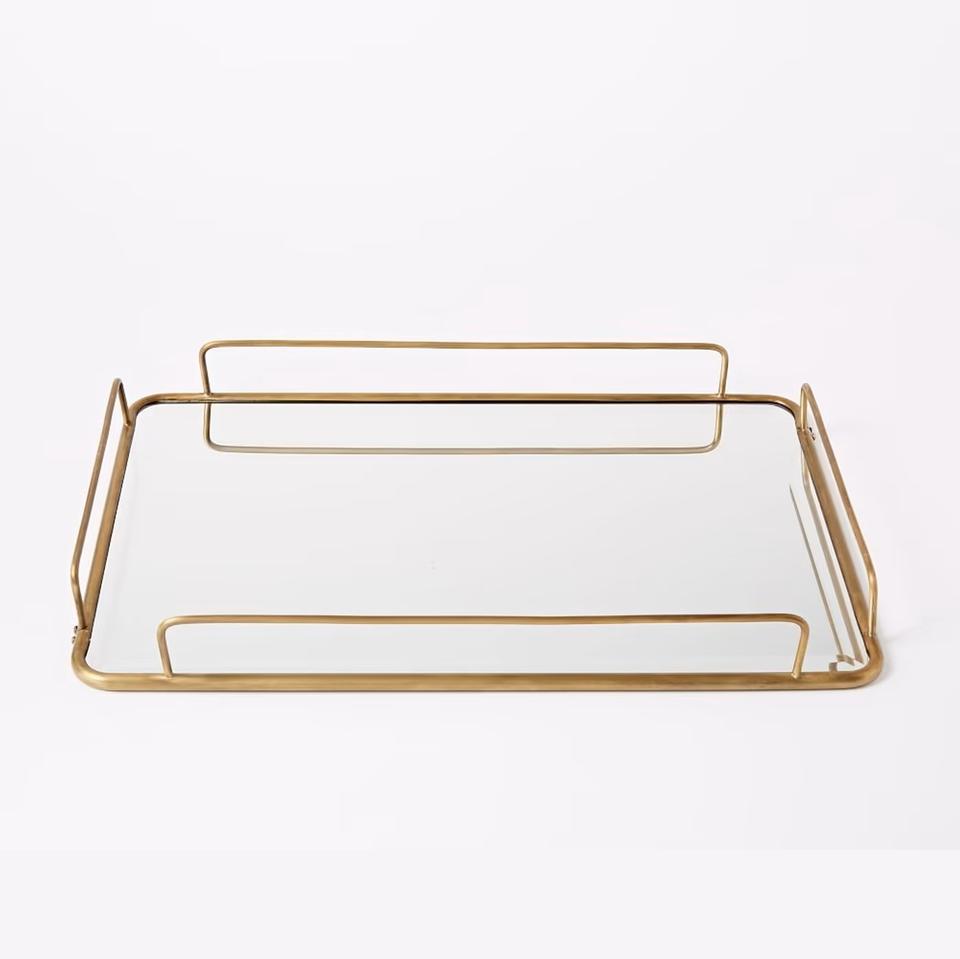 ถาดกระจกโลหะสีทองนำเข้าถาดสำหรับตกแต่งและตกแต่งบ้านสุดหรูโรงแรมและโต๊ะเครื่องแป้ง