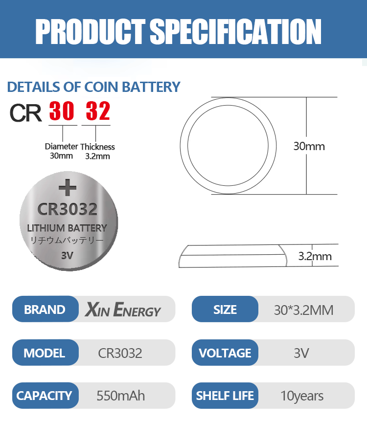 แบตเตอรี่ลิเธียมปุ่ม CR3032นำเข้า3V-ตัวเลือกแรกสำหรับการเพิ่มพลังงานอุปกรณ์อิเล็กทรอนิกส์ที่มีความแม่นยำสูง