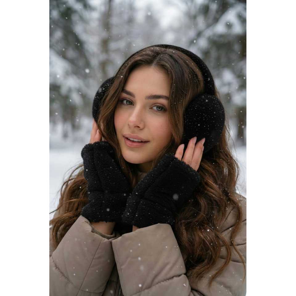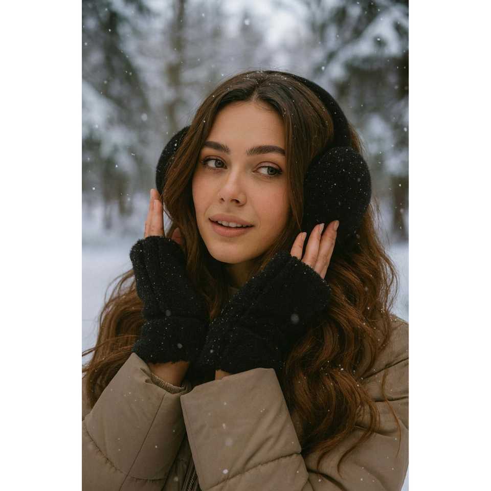 ชุดถุงมือและที่ครอบหูขนกระต่ายนำเข้า สีขาว ขนนุ่ม พร้อมพิมพ์โลโก้ตามสั่ง ลายเรียบง่าย สำหรับเครื่องประดับสวมใส่