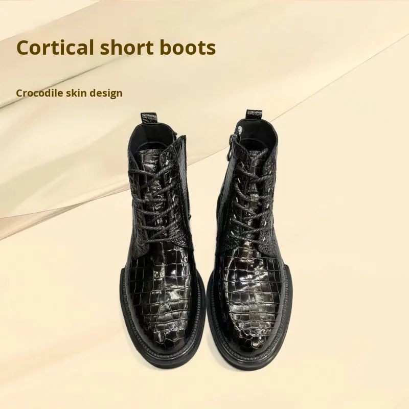 รองเท้าบูทหนังจระเข้นำเข้าสำหรับผู้ชาย, รองเท้าบูทหนังแท้แบบสั้น, รองเท้าบูทมาร์เทนแฟชั่นสำหรับผู้ชาย