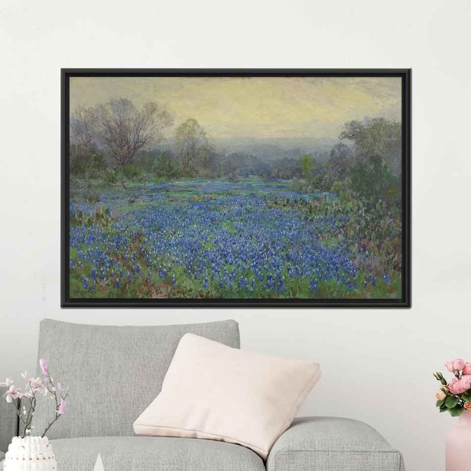 ภาพพิมพ์บนผ้าใบลายดอกไม้ป่าสไตล์อิมเพรสชั่นนิสม์สำหรับตกแต่งบ้านพักตากอากาศ,1P:กรอบสีดำ