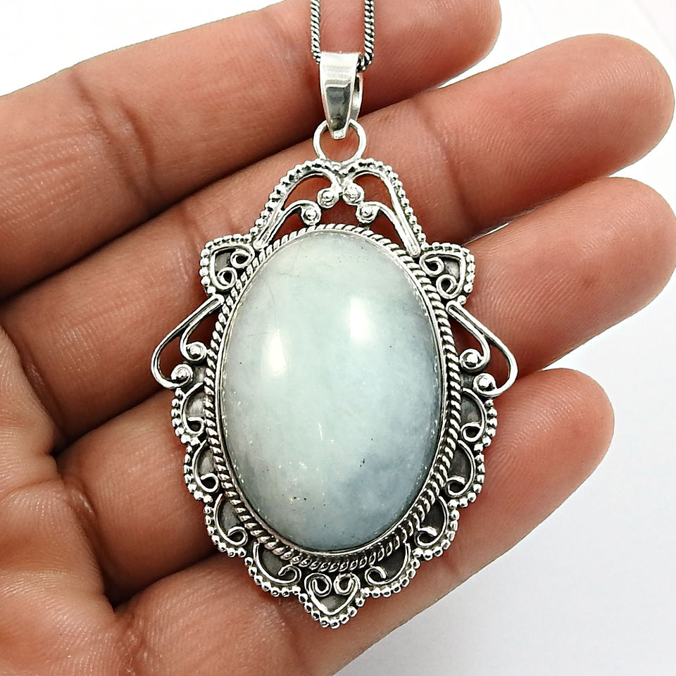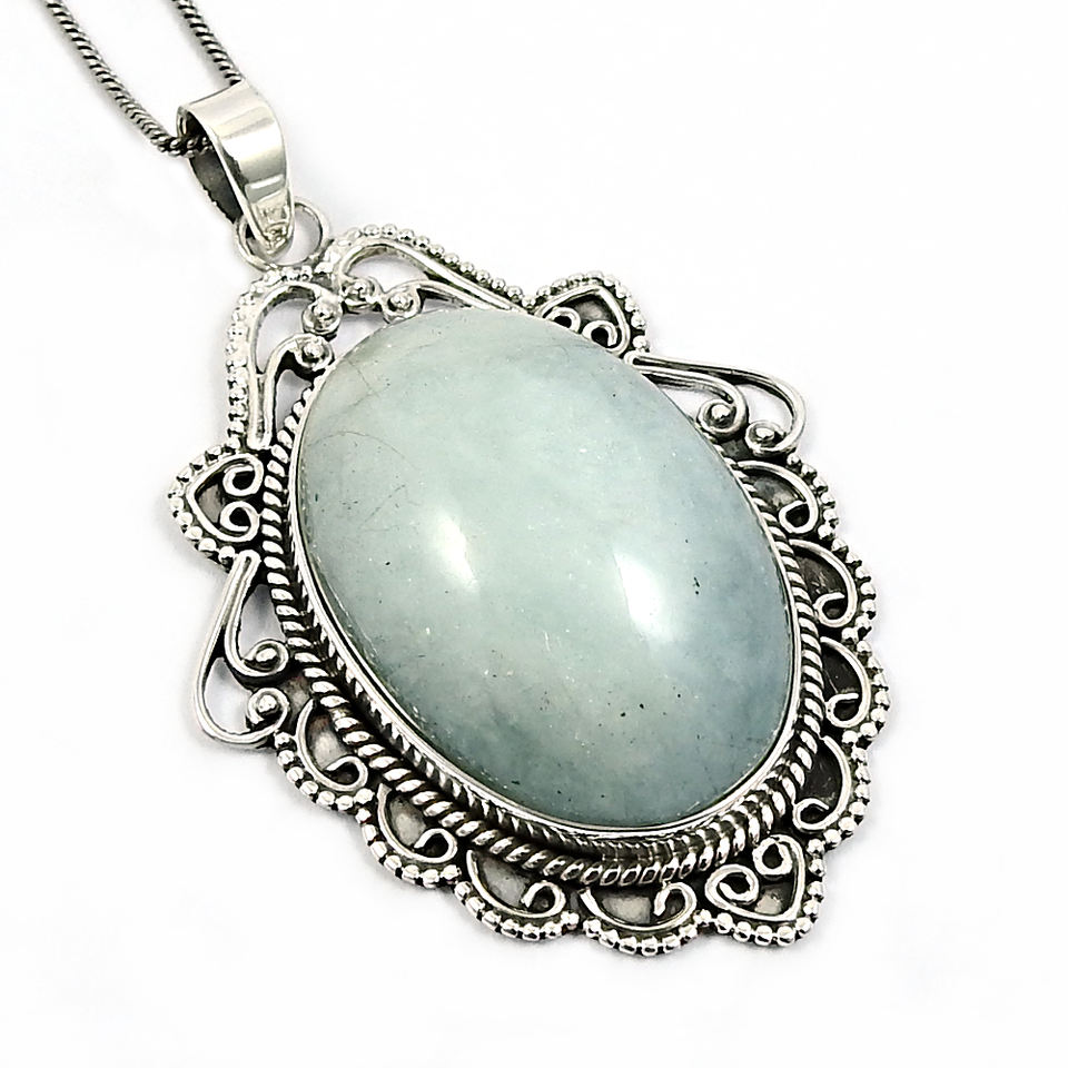 การออกแบบที่น่าทึ่ง 925 เงินสเตอร์ลิงธรรมชาติ Aquamarine อัญมณีรูปไข่ Artisan ดูจี้เครื่องประดับทําด้วยมือผู้ผลิตจํานวนมาก