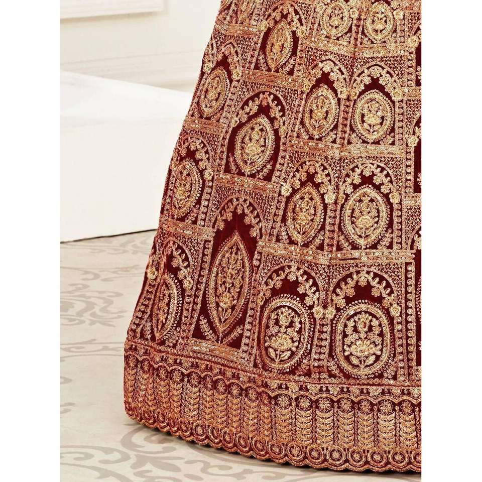 Lehenga choli ชุดเจ้าสาวผ้ากำมะหยี่ปักสีแดง