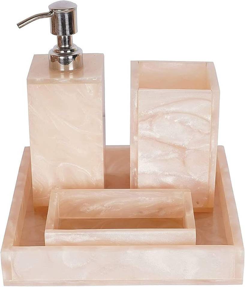 ชุดอุปกรณ์ห้องน้ำเรซิ่นอีพ็อกซี่สุดหรู ช่วยเพิ่มความสวยงามให้กับการตกแต่งภายในด้วยปั๊มสบู่และถาดอเนกประสงค์