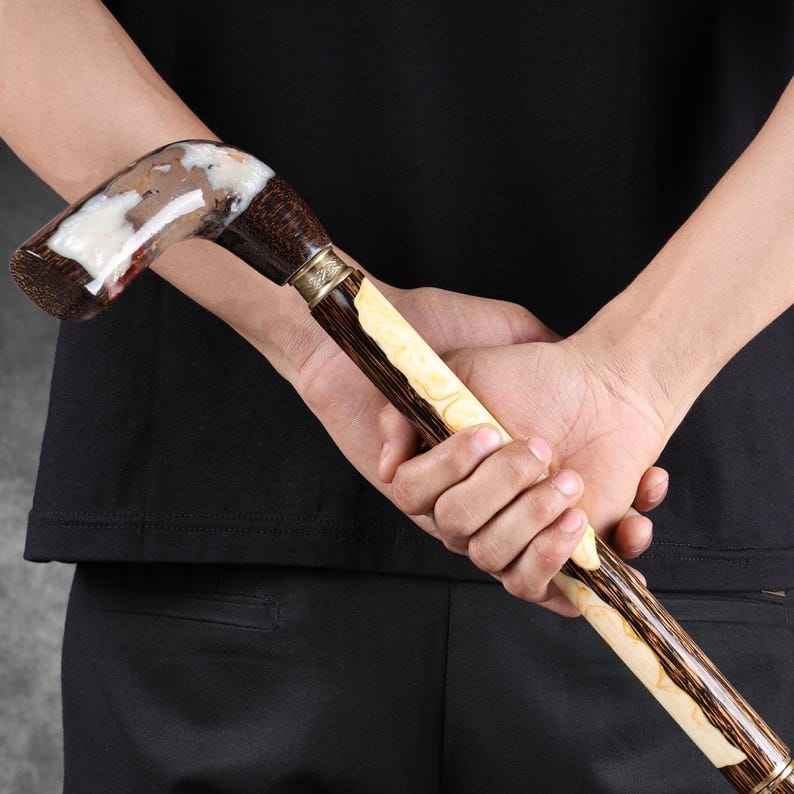 ปรับปรุงสมดุลและความมั่นใจในการเดินด้วยไม้เท้าทำจากเรซินและไม้ ดีไซน์ตามหลักสรีรศาสตร์