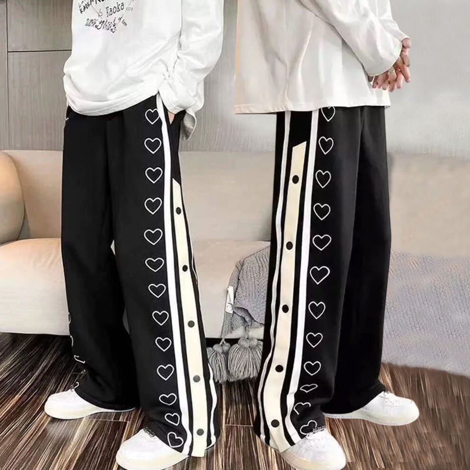 กางเกงวอร์มทรงหลวมสำหรับผู้ชายสีดำและสีขาว