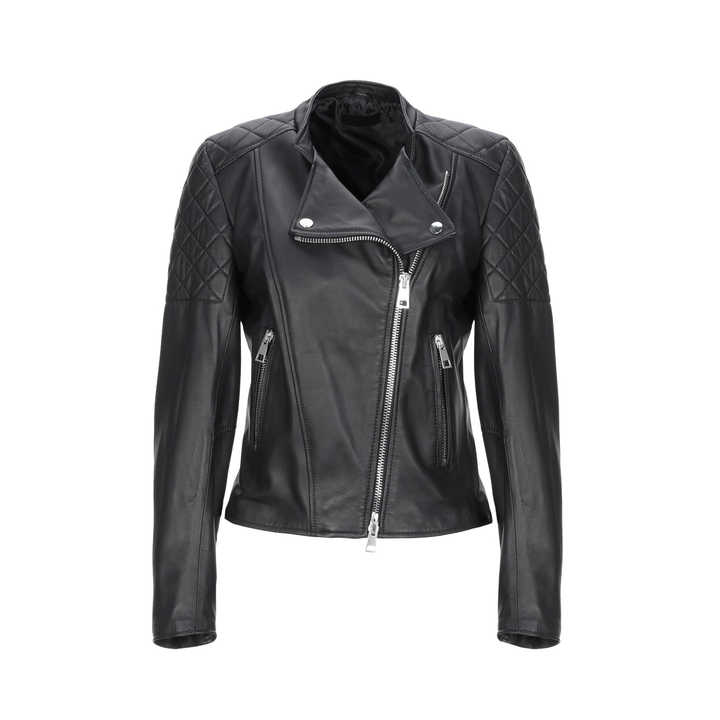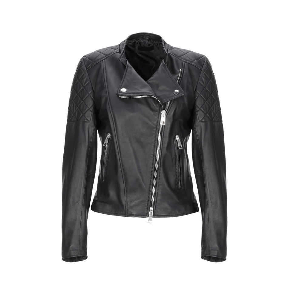 แจ็กเก็ตหนังสีดำเข้มสำหรับผู้หญิงสินค้าคุณภาพระดับพรีเมียมสั่งผลิตได้