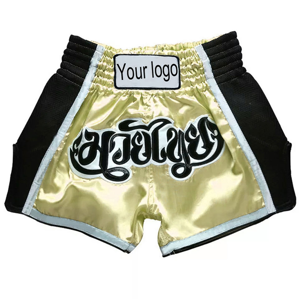 กางเกงขาสั้นมวยไทยสำหรับผู้ใหญ่พิมพ์โลโก้แบบคอนทราสต์หลากสี