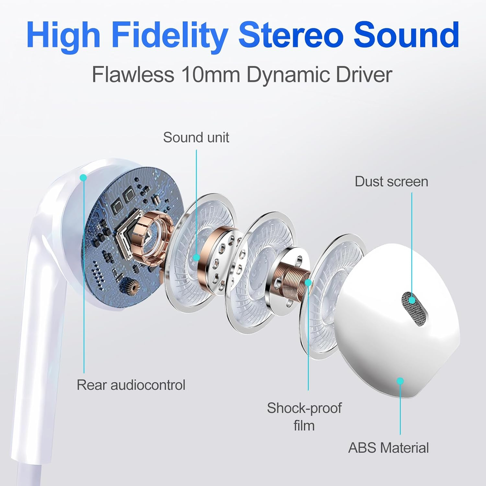 หูฟังแบบมีสายชนิด C พร้อมไมโครโฟนหูฟังแบบมีสายสำหรับ iPhone 16 15 Huawei Xiaomi หูฟังชนิด C แบบพกพาเสียง HIFI