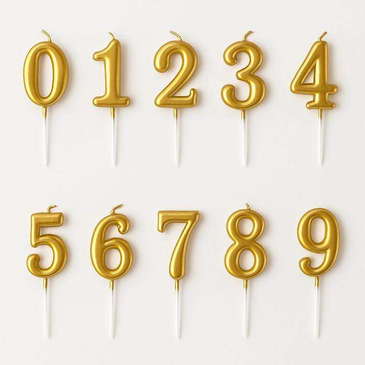 เทียนโลหะสีทองและสีงาช้าง หมายเลข 0-9 ใช้สำหรับตกแต่งเค้กวันเกิด เค้กแต่งงาน