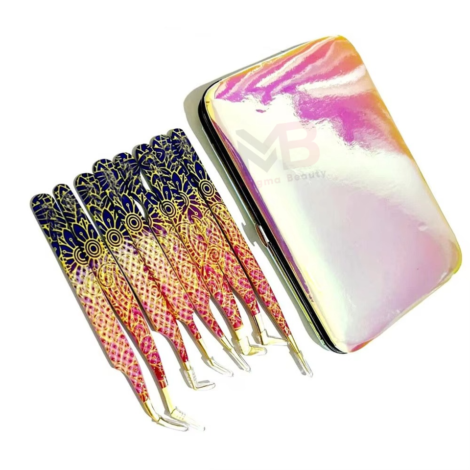 แหนบปลายแหลมสแตนเลส 8 ชิ้น สีเดียว สำหรับต่อขนตา บริการ OEM โดย Magma Beauty