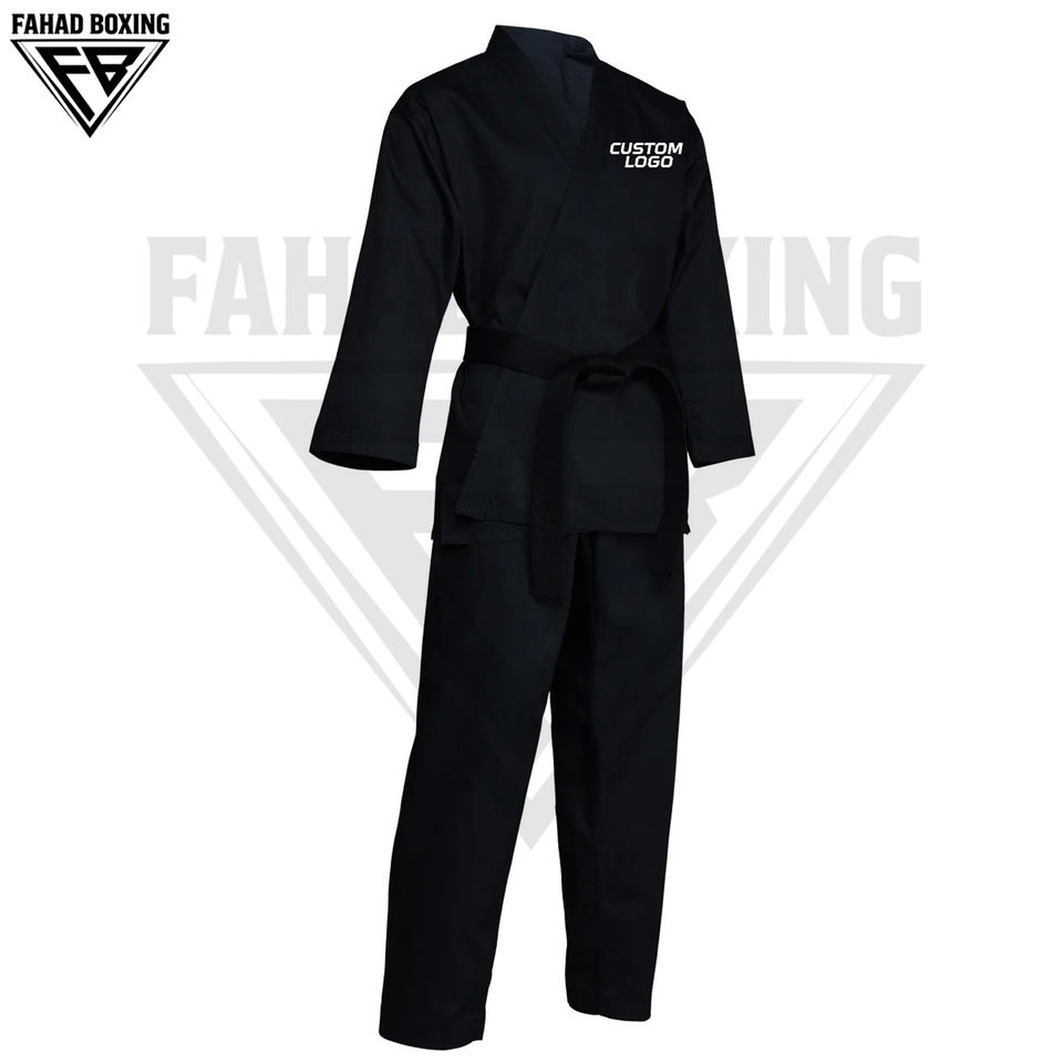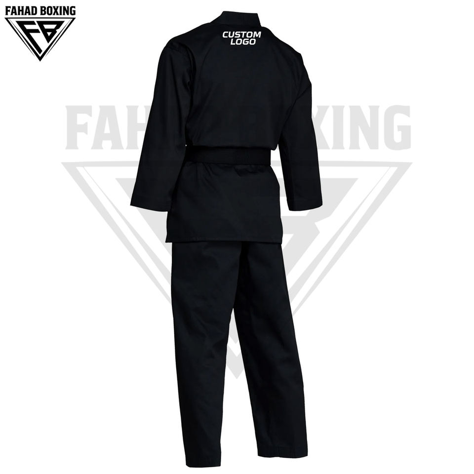 ชุดคาราเต้คุณภาพพรีเมียม สีดำล้วน ระบายอากาศได้ดี น้ำหนักเบา สำหรับผู้ใหญ่ทุกเพศ ผลิตจากผ้าโพลีเอสเตอร์ผสมฝ้าย ผลิตในประเทศปากีสถาน