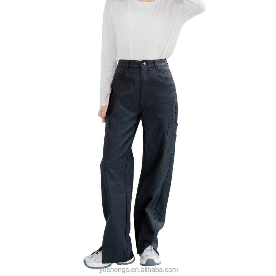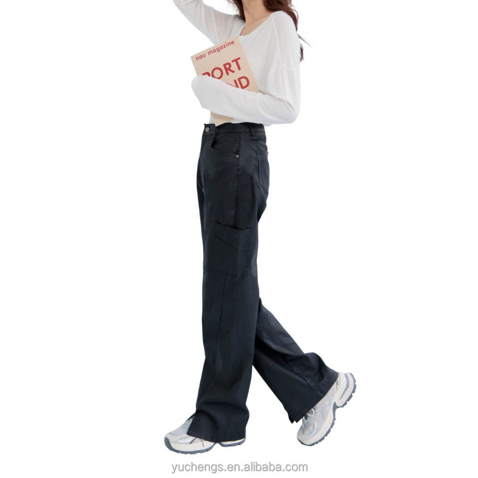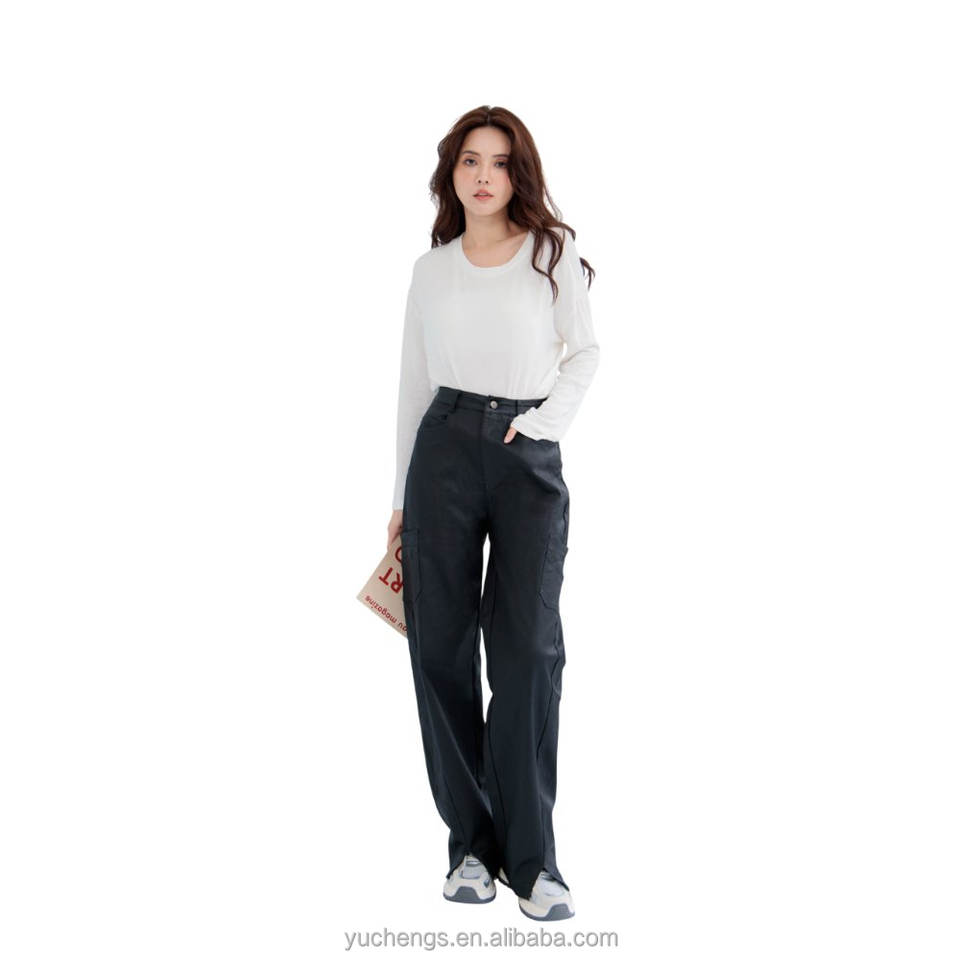 ชุดเดรสลำลองของผู้หญิงโพลีเอสเตอร์100% กางเกงขากว้างลายนูนโลโก้/แพทเทิร์นเอวกลางมีซิปลอยทรงหลวมสำหรับฤดูหนาว