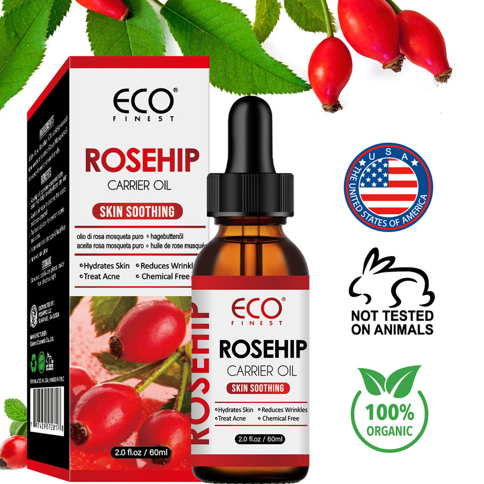 น้ำมันเมล็ดโรสฮิปออร์แกนิคสกัดเย็นบริสุทธิ์ 100% น้ำมันหอมระเหยบริสุทธิ์ 60 มล. สำหรับนวดกัวซา น้ำมันบำรุงผิวหน้า ลดรอยสิว -281315 มีสินค้าในสต็อก