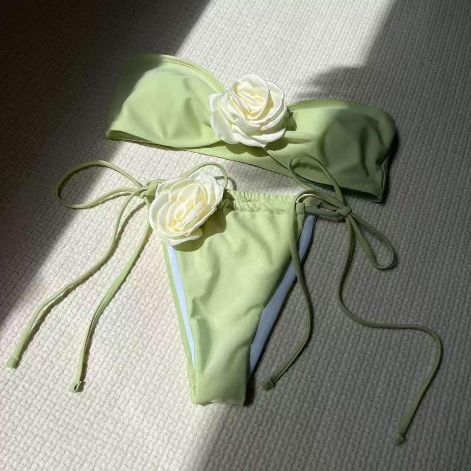 ชุดบิกินี่บราซิลแบบ 2 ชิ้น สายเดี่ยว ลายเสือดาว ลายสก็อต ประดับดอกไม้ 3 มิติ ผ้าชีฟอง มีสินค้าพร้อมส่ง