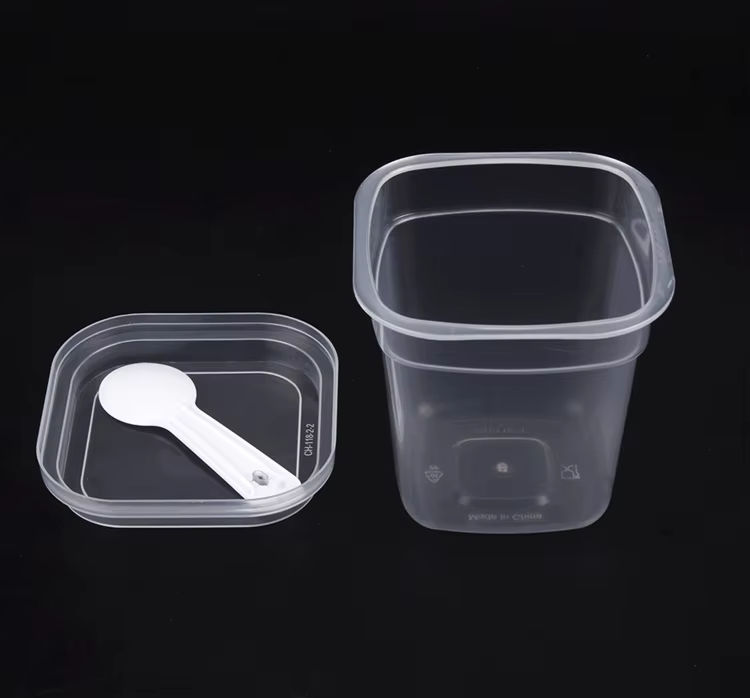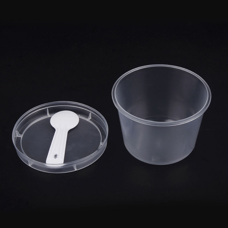 ถ้วยขนมพลาสติกพร้อมฝาและช้อน