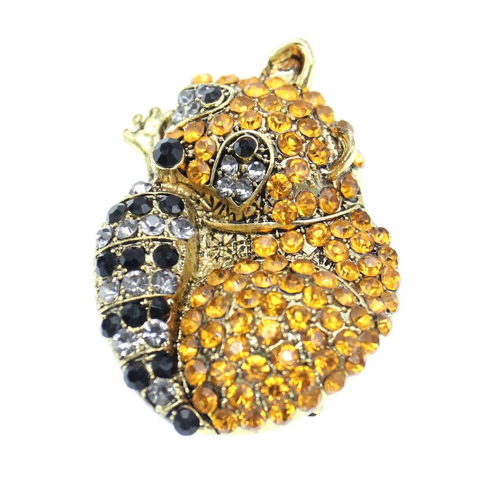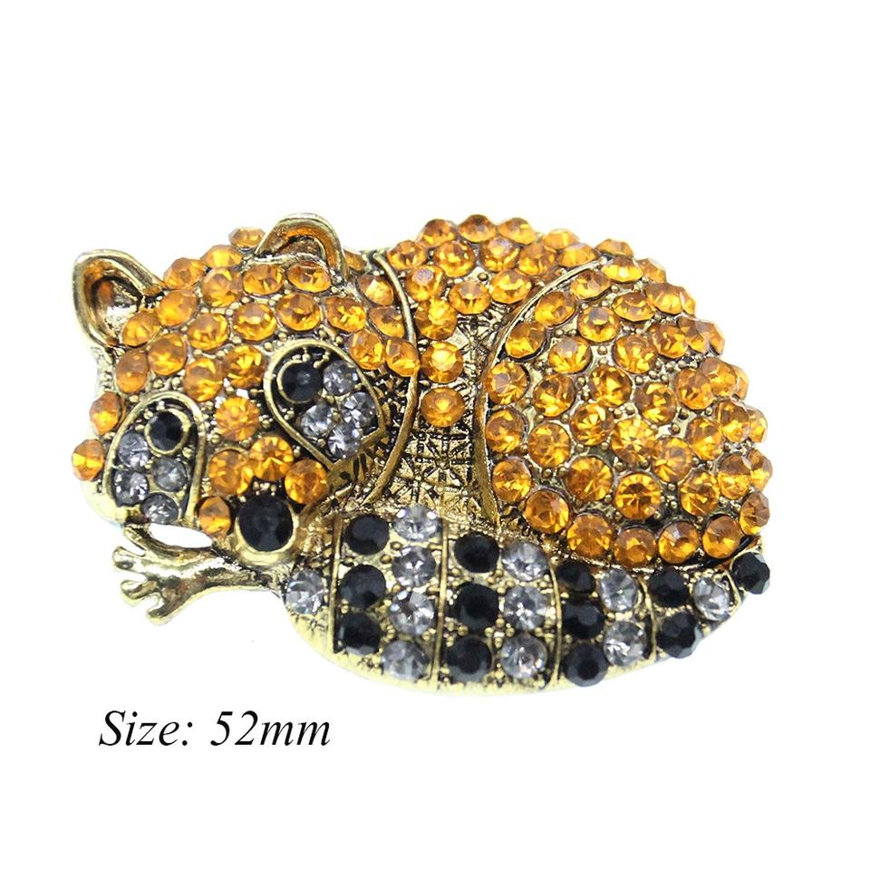 ในสต็อก 52 มม.ผู้หญิงคริสตัลฟ็อกซ์รูปร่างเข็มกลัดทองชุบสัตว์เข็มกลัด Pin