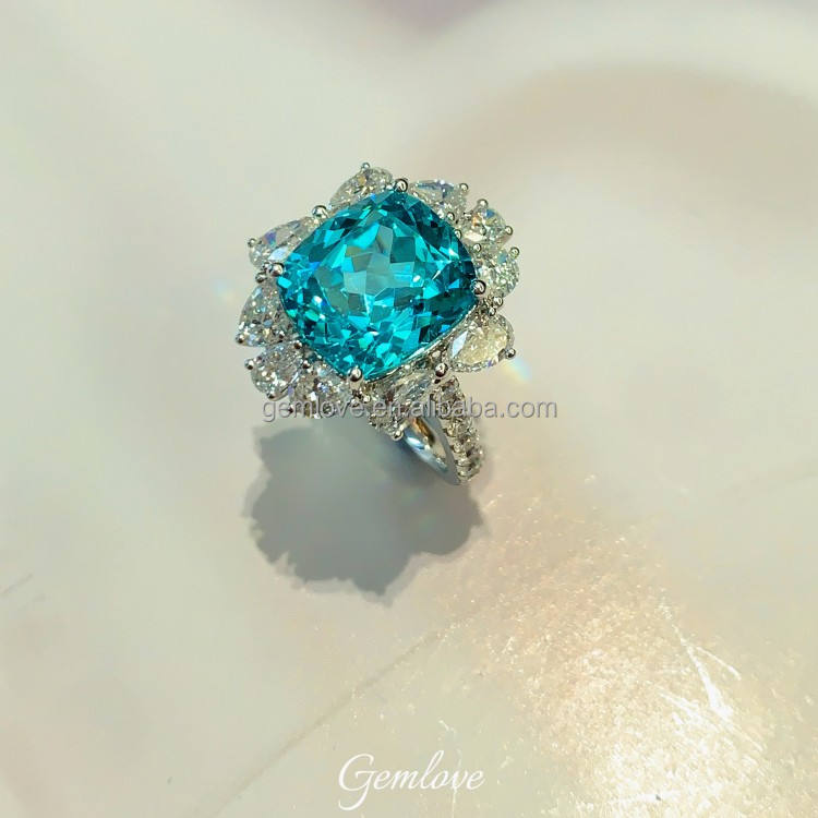 มีสต็อก! แหวนพาราอิบา PT950 8.92ct-เพชรรูปวงรีเครื่องประดับงานแต่งงานสุดหรูสำหรับผู้หญิง