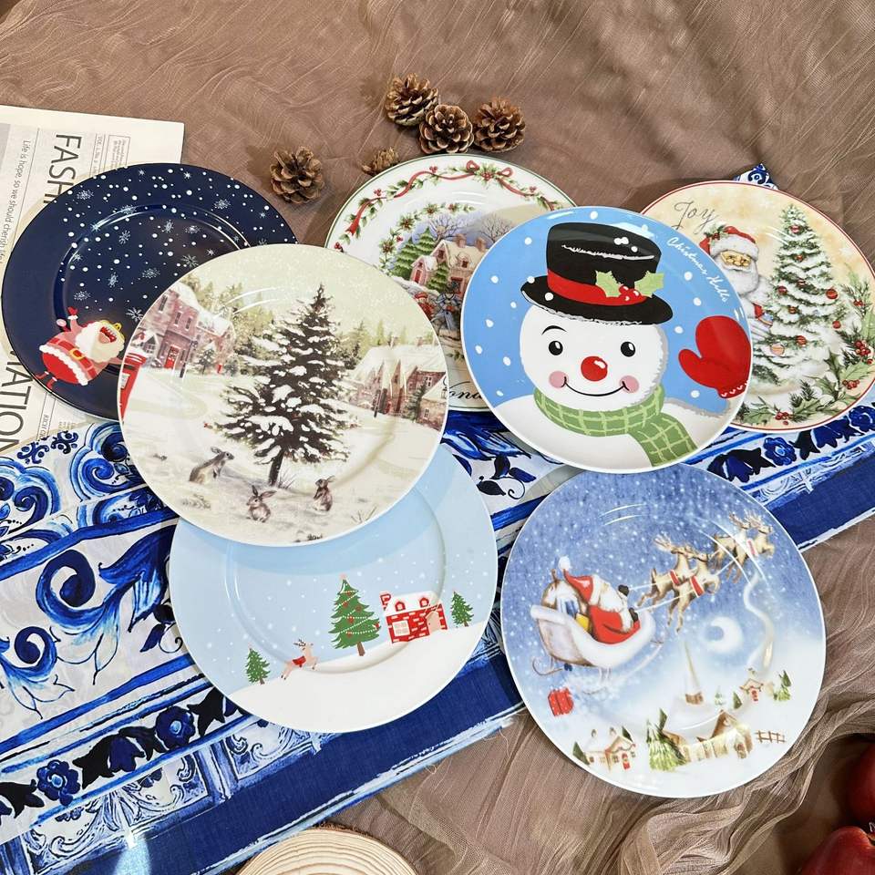 มีสต็อก! จานเซรามิกพิมพ์ลายคริสต์มาส8นิ้วสำหรับใช้บนโต๊ะอาหาร
