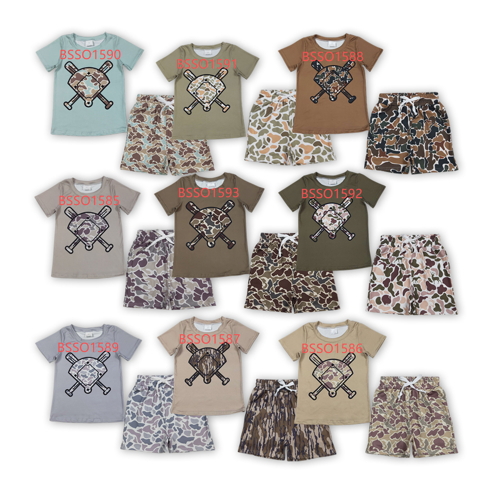 เสื้อเบสบอลลายพราง กางเกงขาสั้นเด็กผู้ชาย 9 สี ชุดฤดูร้อน เสื้อผ้าเด็กชาย ชุดพี่น้อง บูติก เสื้อผ้าเด็กเล็ก ราคาส่งจากโรงงาน