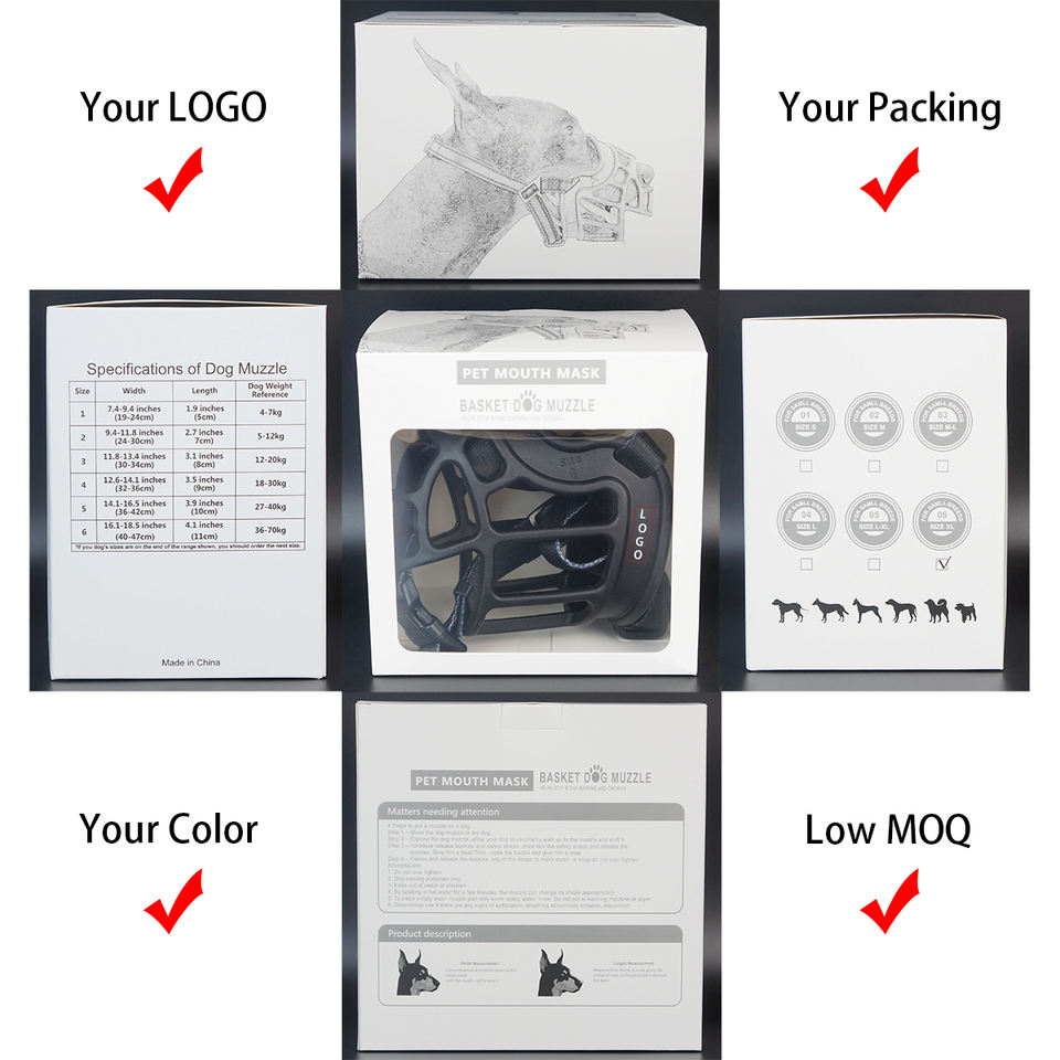 ที่ครอบปากสุนัขพลาสติกสำหรับสัตว์เลี้ยงสีดำระบายอากาศได้ดีปรับได้สำหรับสุนัขขนาดใหญ่สุนัขสัตว์เลี้ยงขนาดเล็ก