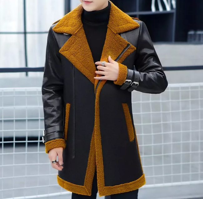 เสื้อโค้ทยาวหนังแท้สำหรับผู้ชายเสื้อโค้ทหนังแกะแท้ขนเทียมเสื้อโค้ทผลิตจากโรงงานจำนวนมากมีในสต็อก