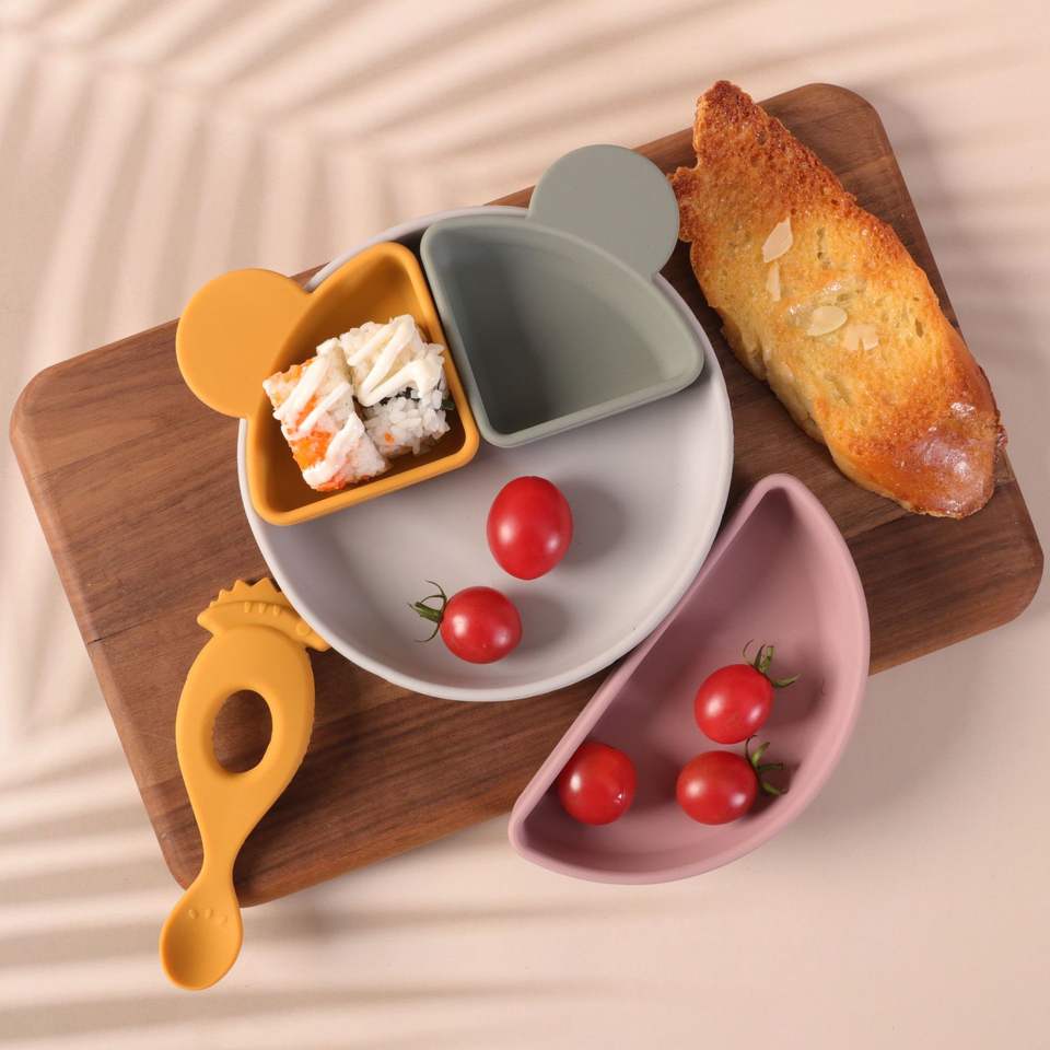 ชุดจานชามอาหารซิลิโคนลายการ์ตูนสำหรับเด็กและเด็ก