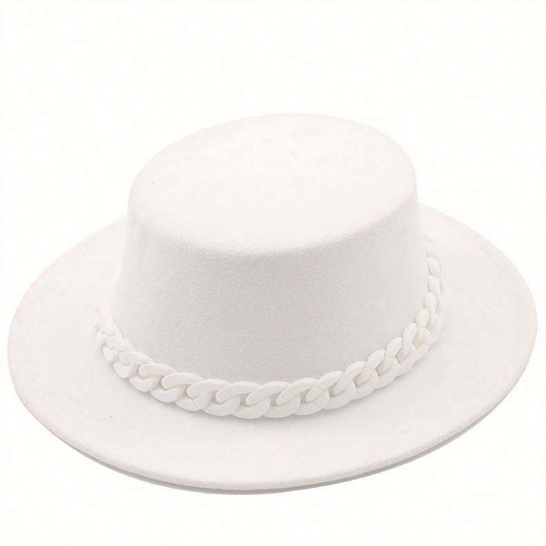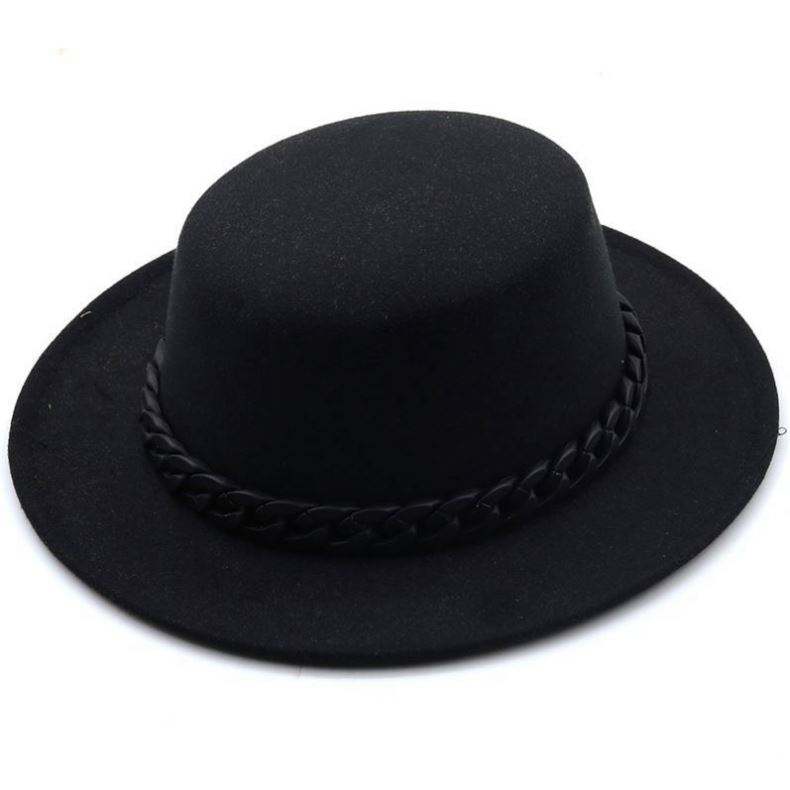 หมวกเฟโดร่าสักหลาดแบบ unisex ราคาถูก มีสินค้าพร้อมส่ง ปีกกว้าง พร้อมสายโซ่ สไตล์ลำลอง สำหรับกิจกรรมกลางแจ้ง