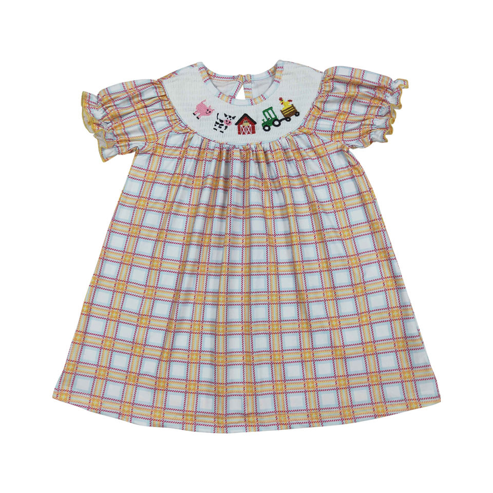 ชุดเดรสยาวถึงเข่าของเด็กผู้หญิงตัวเล็กลายปักสาหร่ายสไตล์บูติกแฟชั่นใหม่สำหรับเด็กวัยหัดเดินฤดูร้อน