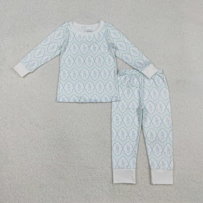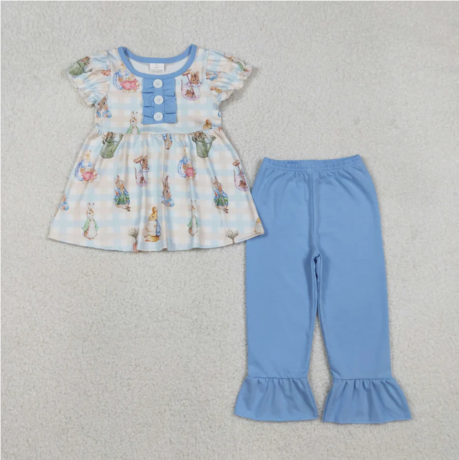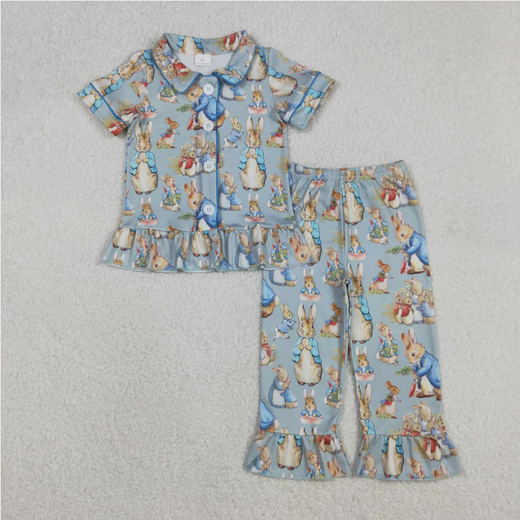 ชุดเซ็ตสองชิ้นลายลูกไม้สีเขียวแขนสั้นลายกระต่ายอีสเตอร์สำหรับเด็ก มีสินค้าพร้อมส่ง