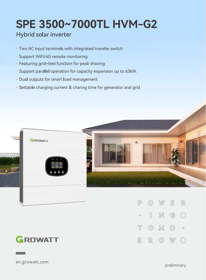 อินเวอร์เตอร์พลังงานแสงอาทิตย์3.5KW ไฮบริดสเตอร์พลังงานแสงอาทิตย์อินเวอร์เตอร์ SPE 3.5KTL HVM-G2 growatt อินเวอร์เตอร์พลังงานแสงอาทิตย์เฟสเดียว