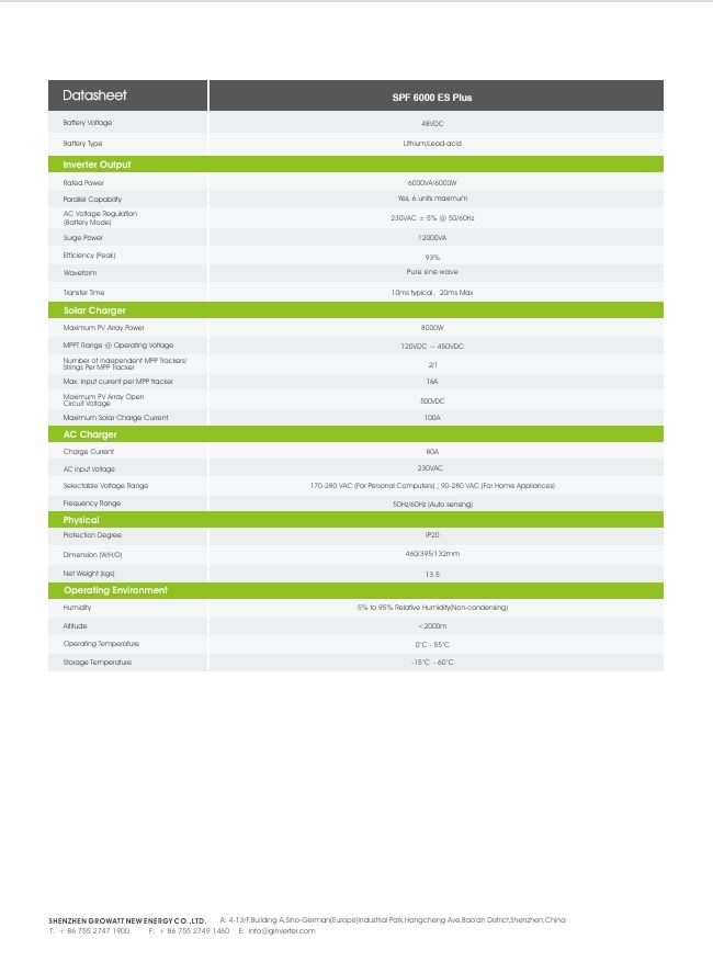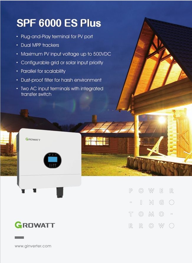 Growatt อินเวอร์เตอร์พลังงานแสงอาทิตย์6000วัตต์เฟสเดียวกริด6KW 220/230V 1เฟส