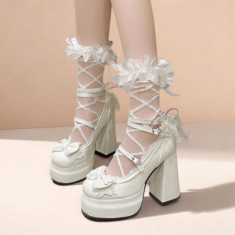 รองเท้าส้นสูงสไตล์โลลิต้าแบบญี่ปุ่น รุ่น Heart's Wish ทรงบัลเลริน่า หวานซ่ารับซัมเมอร์ หัวกลม ลาย Love Letter สำหรับผู้หญิง มีสินค้าพร้อมส่ง