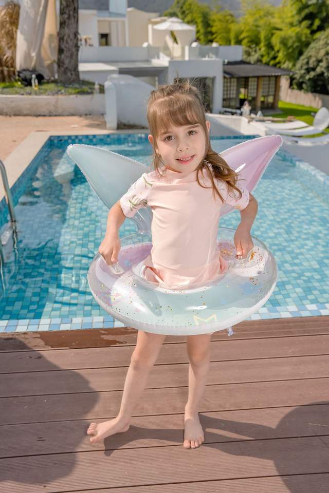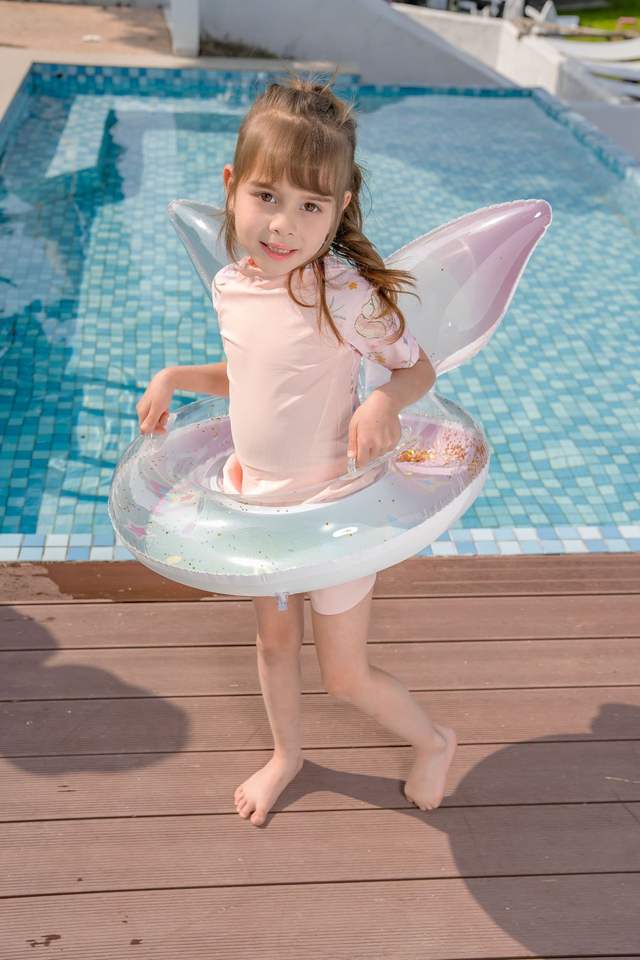 ห่วงยางว่ายน้ำเด็กแบบกางเกง ลายโฮโลแกรมวิบวับ สไตล์นางเงือก วัสดุ PVC หนาพิเศษ พร้อมส่ง