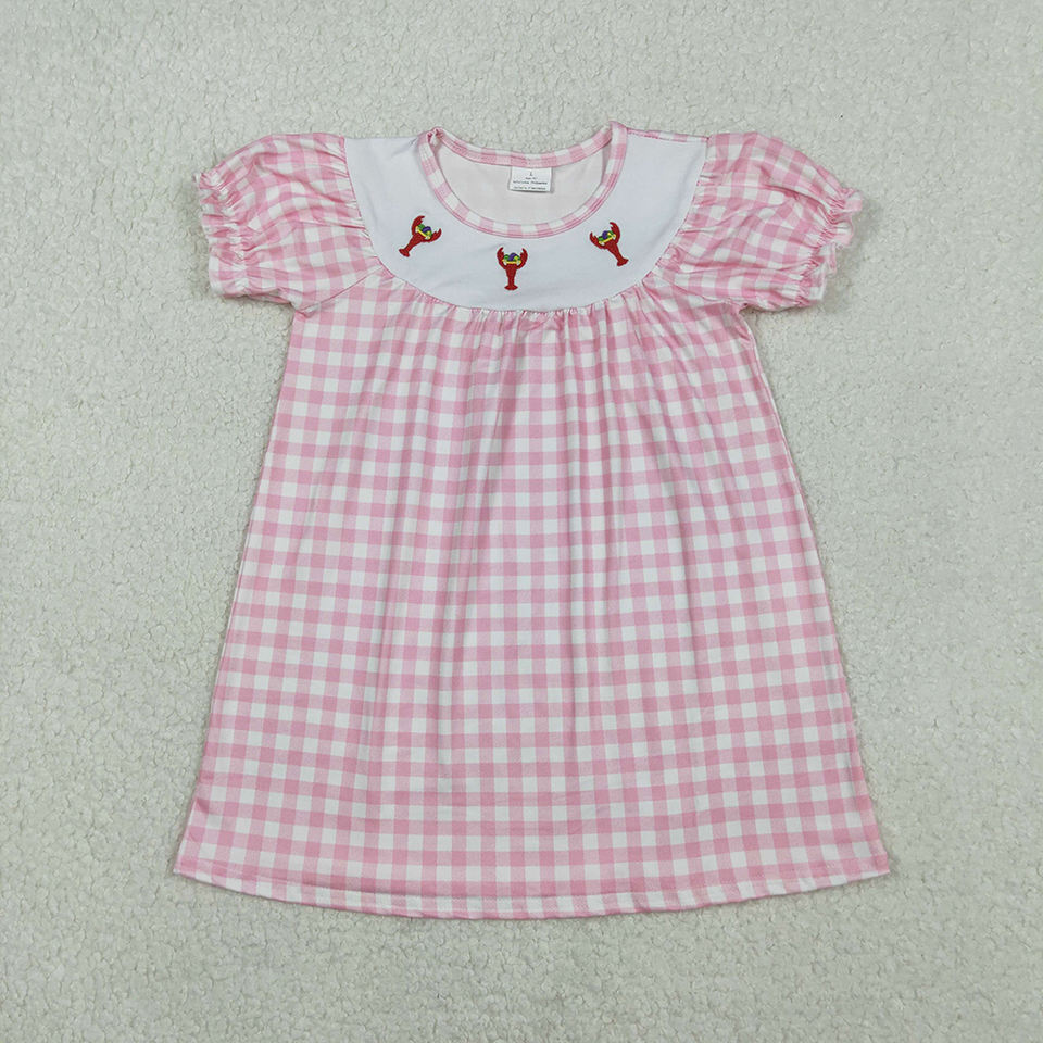 เสื้อผ้าจับคู่ลายสก็อตสำหรับเด็กผู้ชายชุดเดินชายหาดปักลายกุ้ง